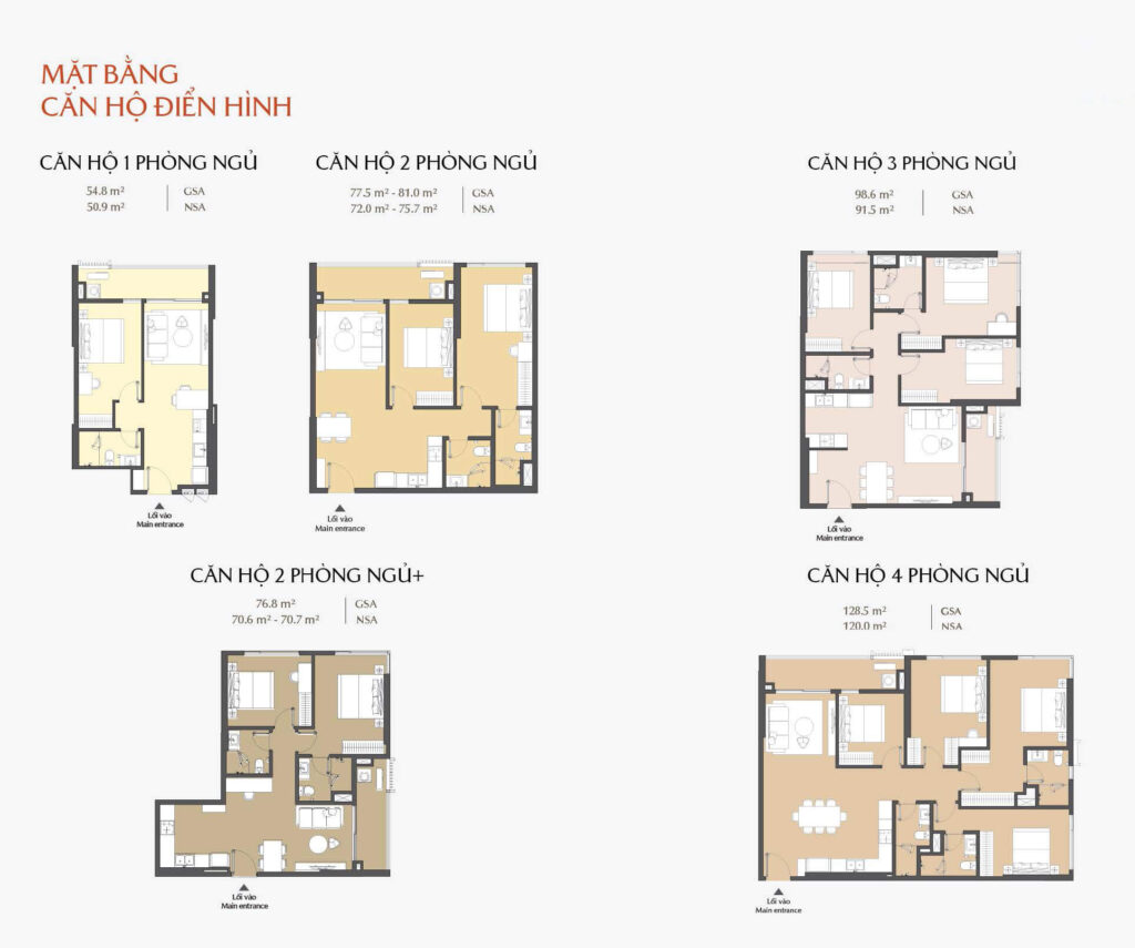 Diện tích điển hình : 48m², 80m², 130m², 170m²